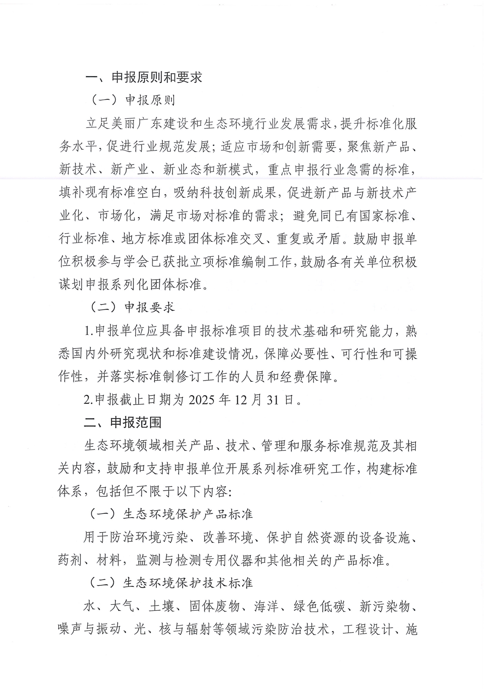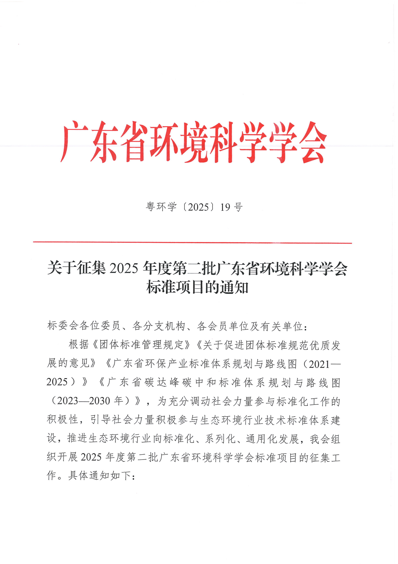 关于征集2025年度第二批广东省环境科学学会标准项目的通知