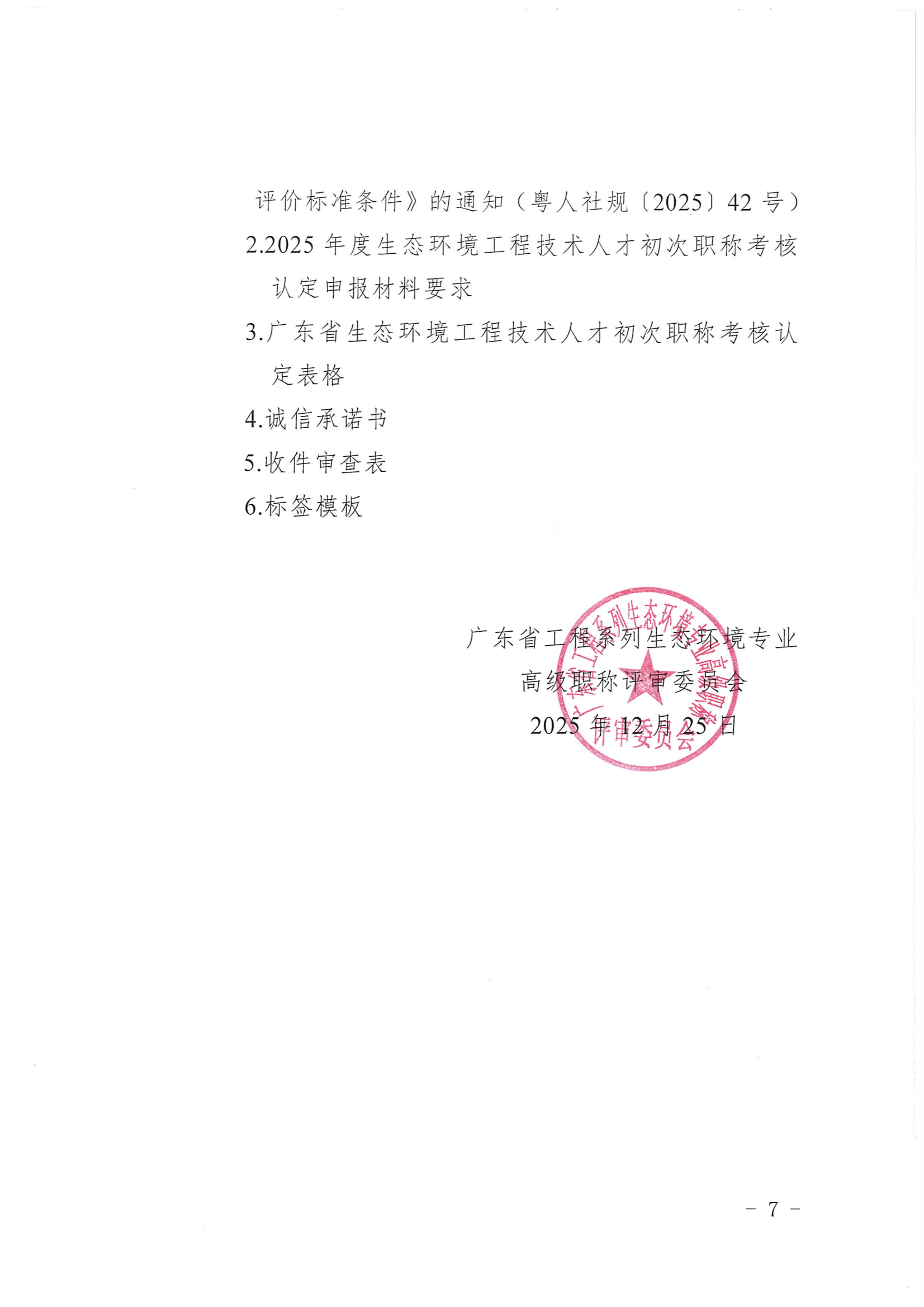 广东省工程系列生态环境专业高级职称评审委员会关于开展2025年度广东省生态环境工程技术人才初次职称考核认定工作的通知.rar