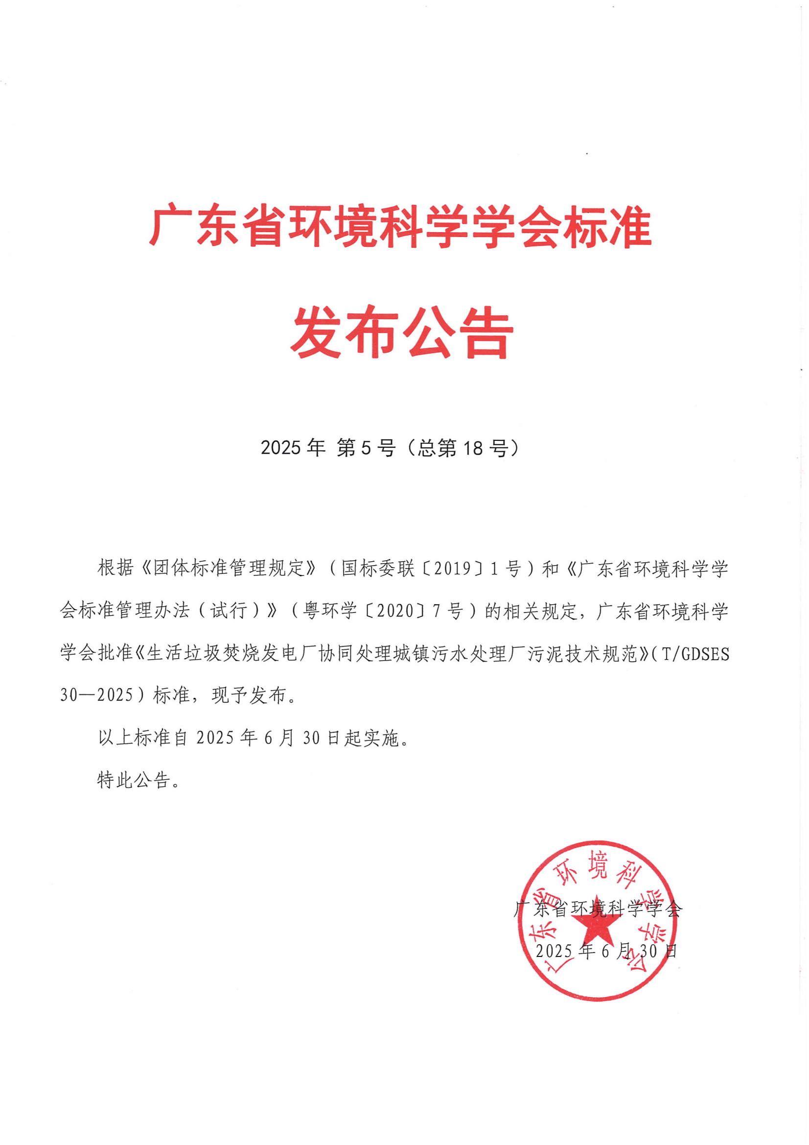 广东省环境科学学会标准发布公告-2025年 第5号(总第18号)