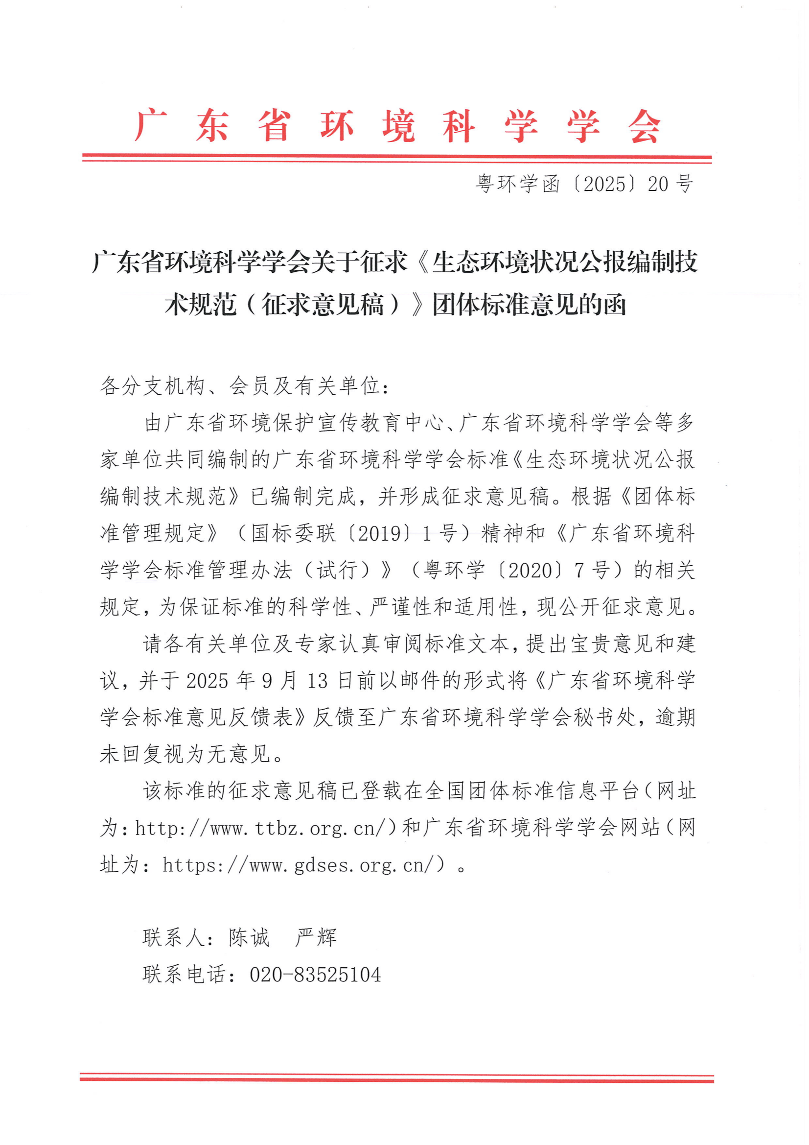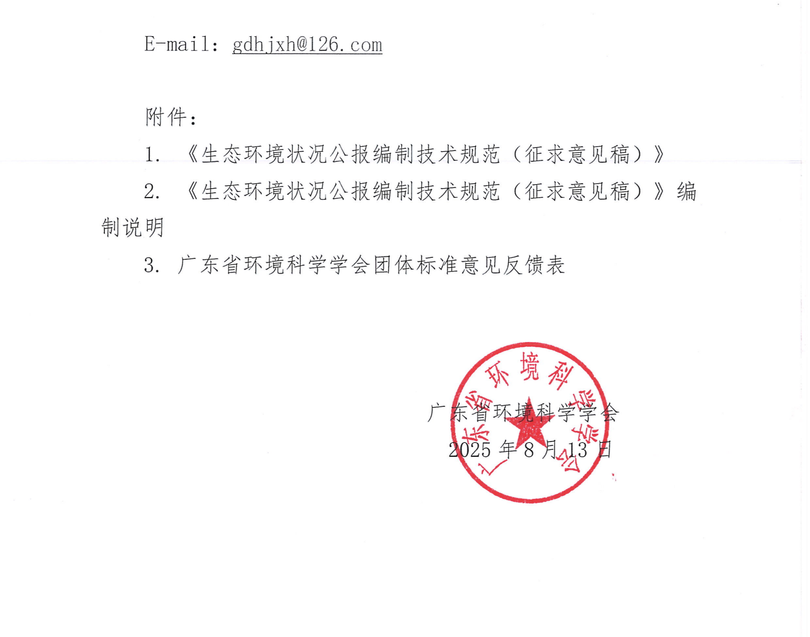 广东省环境科学学会关于征求《生态环境状况公报编制技术规范(征求意见稿)》团体标准意见的函.rar