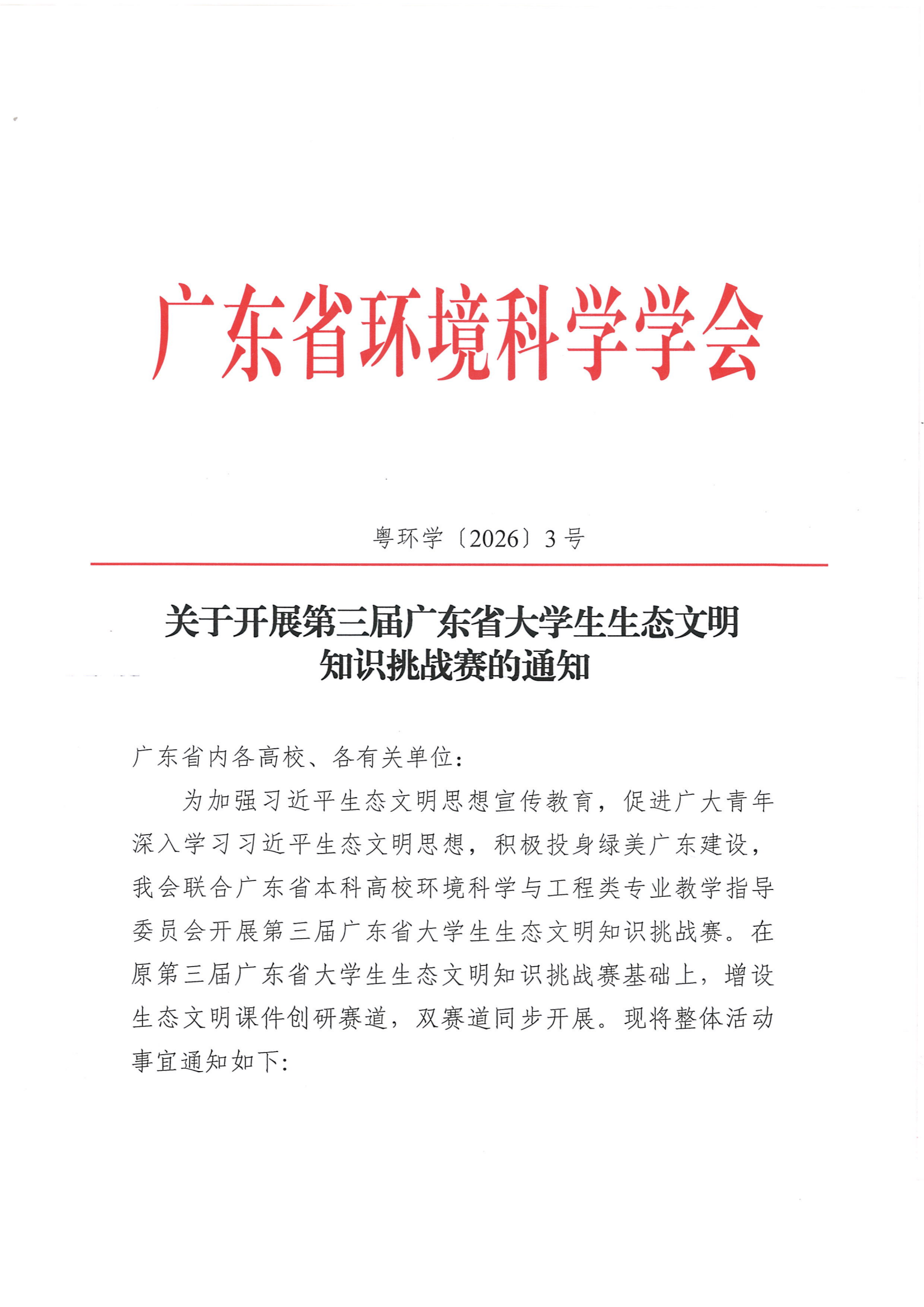 关于开展第三届广东省大学生生态文明知识挑战赛的通知